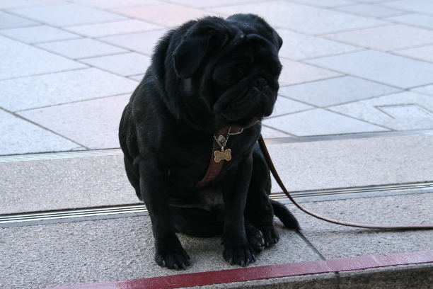 ベンチに座って休んでいると、 パグを連れた女の人がやって来た。 パグくんの紐を、スロープにくくりつけて、女の人は建物に入っていった。 パグは、 「はっ」と顔を上げて、建物の自動ドアに駆け寄る。 けど届かない。 スロープから、紐ぶんの長さしか進めないパグくん。 「きゅーんきゅーん」って、 悲しい声を上げて ずっと見てる。 また、 悲しく鳴く。 ずっと、見てる。 「置いてかないで」 って、言ってるんだろうな って かわいそうだけど可笑しいほどに分かる。 「きゅぅぅん」 その場に座り込んでしまった。 近づいてみたら、 すごく悲しげな顔 …なのはシワのせいなのかな。 力なく座った感じと切ない顔が たまらなく かわいい。 だいじょうぶだよ。 2008.03.01 Sat 02:29:29